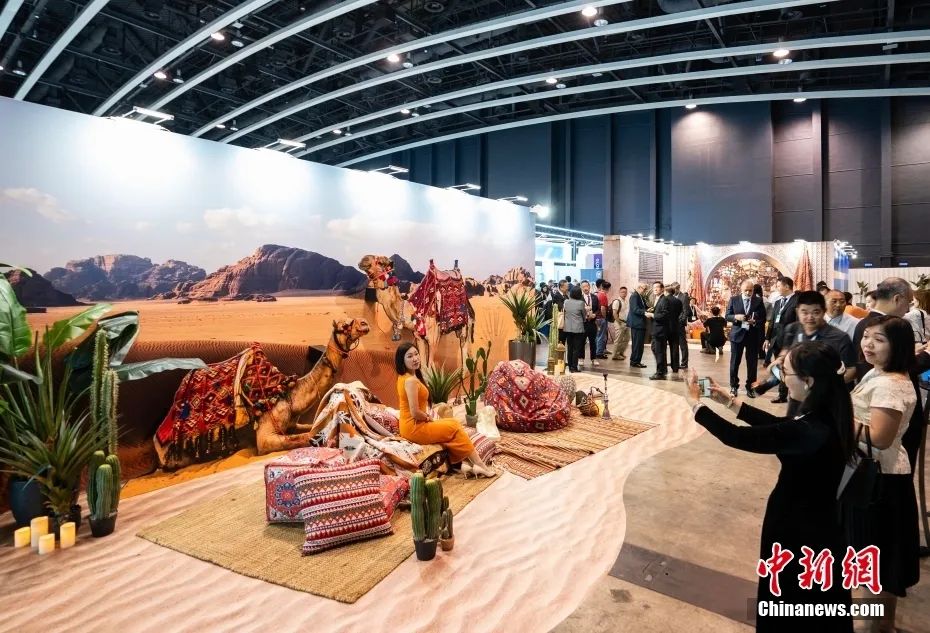 2023年9月,第八屆“一帶一路”高峰論壇在香港舉行,與會者在宣傳展板前留影。
