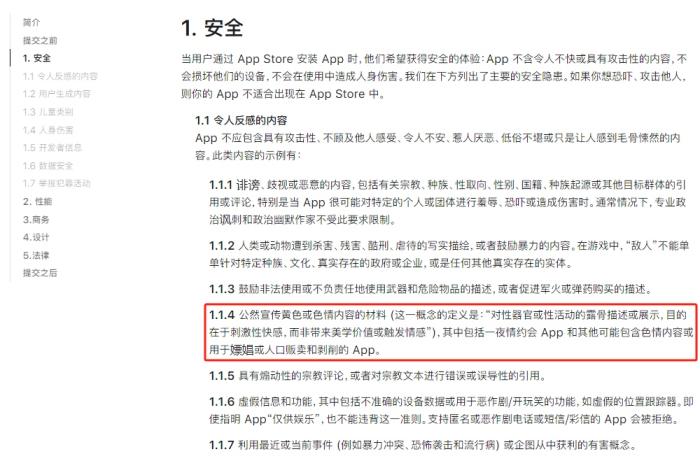 App Store審核指南。截圖自蘋果官網