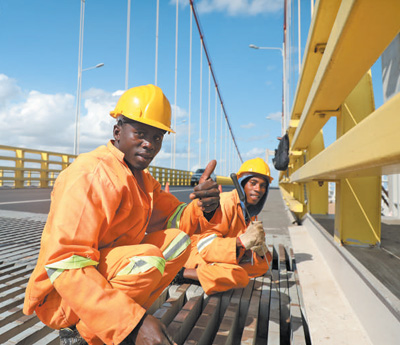 據(jù)介紹,馬普托大橋項(xiàng)目在建設(shè)過(guò)程中踐行屬地化經(jīng)營(yíng)理念,建設(shè)最高峰期雇傭當(dāng)?shù)貑T工超過(guò)3000人,焊工、車工、鋼筋工、機(jī)械操作手等一大批專業(yè)技術(shù)人員通過(guò)大橋項(xiàng)目提升了職業(yè)技能。“在大橋項(xiàng)目上學(xué)到的一技之長(zhǎng)幫我找到了新的工作。”莫桑比克青年菲爾德普卡談及在馬普托大橋項(xiàng)目工作的收獲,臉上洋溢著幸福的笑容。