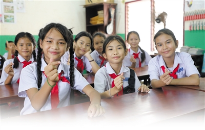 “新教學樓教室寬敞明亮、干凈整潔,黑板、課桌椅、電扇等一應俱全。良好的學習生活環境吸引了許多學生,家長也因此更加重視子女的教育。”中老友好農冰村小學校長潘通告訴記者,在中國的幫助下,中老友好農冰村小學發生了翻天覆地的變化。“我們已經成為占塔布里縣最好的學校,還評上了老撾省級優秀學校。附近村子的家長們爭相把孩子送來學習。”