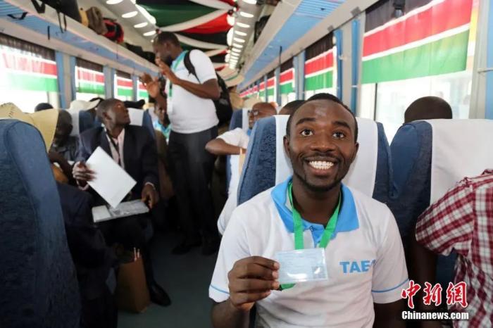資料圖:當地時間2017年5月31日,蒙巴薩至內羅畢標準軌鐵路通車儀式在肯尼亞蒙巴薩舉行,期間一名旅客展示自己的車票。中新社記者 宋方燦 攝