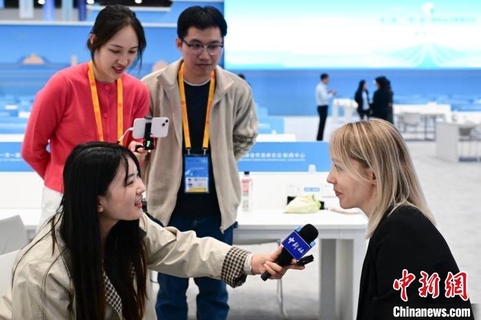 下午,會場內,各國媒體記者也陸續來“探館”。俄羅斯第一電視臺記者Nataliia Liublinskaia在接受記者采訪時表示,此次論壇將有許多國家參加,是一次重要會議,為大家聚在一起討論國際社會發展形勢提供了重要的議事平臺。談及“一帶一路”倡議近年的發展,她表示,共建國家間的道路基礎設施有了明顯改善,交通變得更加便利,彼此間的人員和商貿聯系更加密切。