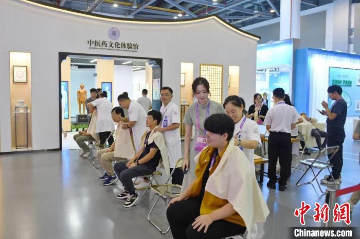 浙江省中山醫院的推拿團隊在中醫藥文化體驗館服務中外媒體。浙江省中山醫院供圖