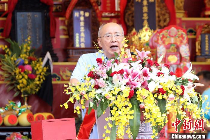 10月22日,臺(tái)北客家義民嘉年華主祭大典在臺(tái)北舉辦。世界客屬總會(huì)榮譽(yù)總會(huì)長吳伯雄致辭?!≈行律缬浾?陳小愿 攝