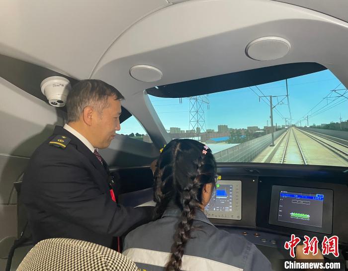 圖為泰國學(xué)員在全功能動(dòng)車駕駛仿真器中體驗(yàn)駕駛高鐵。 盧琪 攝
