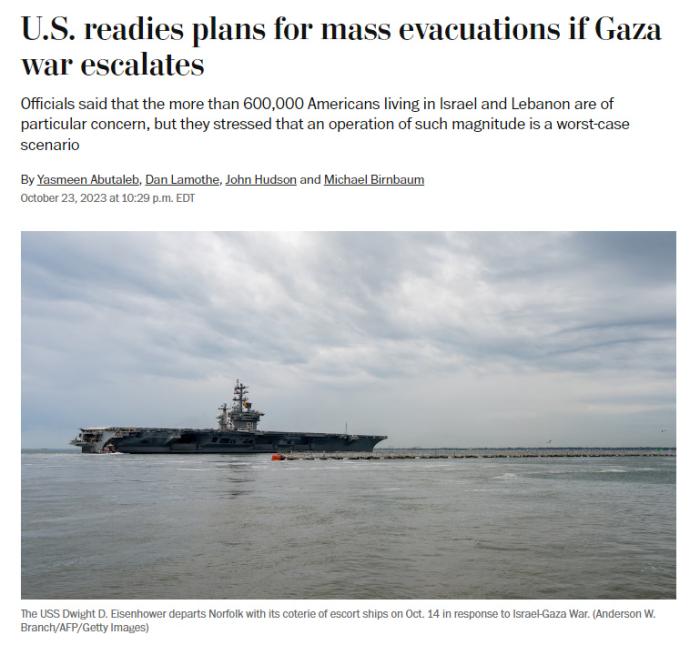 據報道,四名熟悉美國政府應急計劃的官員透露,居住在以色列和鄰國黎巴嫩的美國人對巴以局勢尤其感到擔憂,他們還表示,如果發生如此大規模的撤離,將被認為是“最壞的情況”。