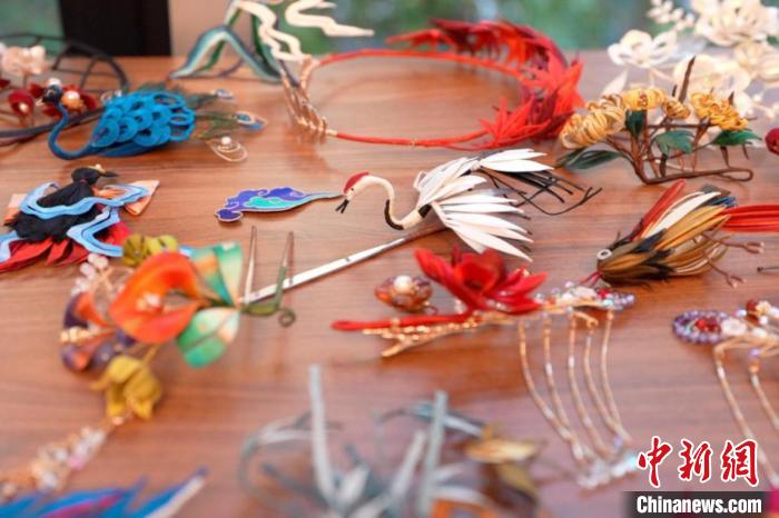 圖為活動展示的部分中國傳統發簪配飾。漢文化藝術交流中心供圖