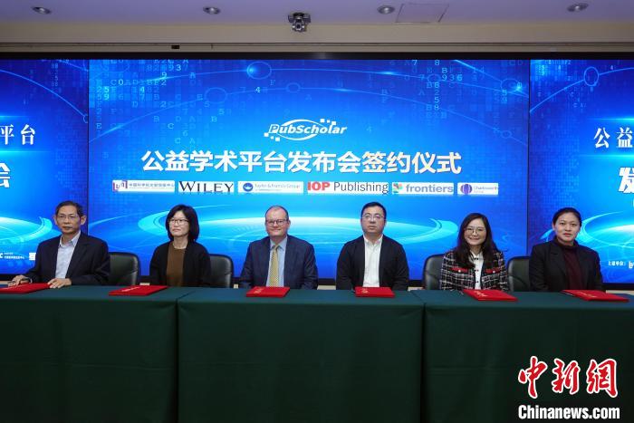11月1日,“PubScholar公益學術平臺”在中國科學院文獻情報中心正式發布,并在發布會上舉行相關合作簽約儀式。中新網記者 孫自法 攝