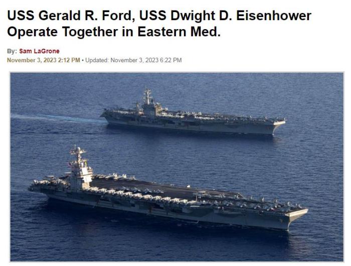 中新網11月4日電 綜合外媒報道,美國第六艦隊當地時間3日宣布,過去三天里,美國海軍在東地中海舉行雙航母演習。