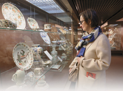 陶瓷收藏館展廳內,一架以“葡萄牙藍”瓷板畫藝術形式制作的小提琴最為精致奪目。這件藏品由捷克藝術家瓦茨拉夫·奇夫卡制作,小提琴外表突出還原了瓷板畫的光澤和色彩,同時兼具中國青花瓷的藝術神韻。彼時歐洲人尚在探索制瓷工藝,其創作方法、使用材料和圖形模式與中國雖有所不同,但一件件精美的瓷器制品依然能令我們看出當時歐洲工匠的精致技藝,以及中國傳統藝術風格在當地的嬗變發展,這些瓷器堪稱中葡藝術風格相互融合的產物,也是海上絲綢之路互聯互通的結晶。