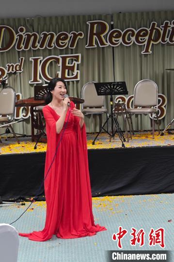 廣州新華學(xué)院音樂老師邱思暉在晚會(huì)上表演節(jié)目。受訪者供圖