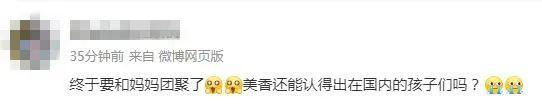 還有網友感慨,“終于要和媽媽團聚了,美香還能認得出在國內的孩子們嗎?”