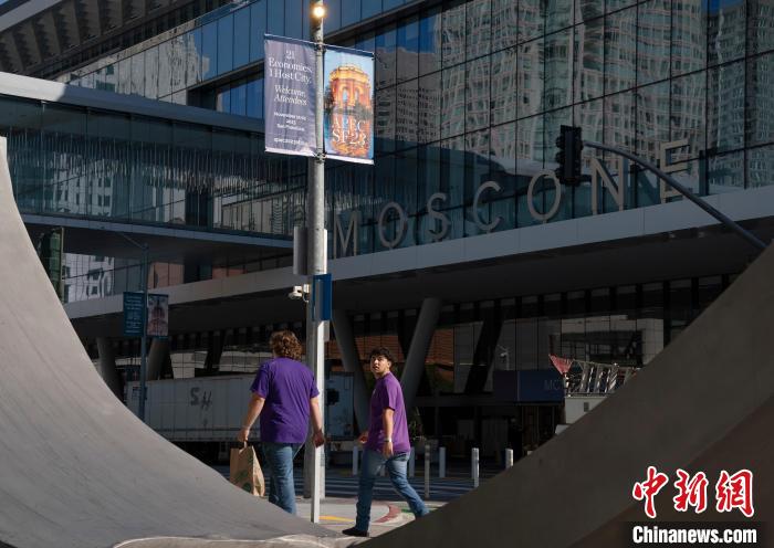 當地時間11月7日,民眾從舊金山莫斯康中心附近經過。 中新社記者 劉關關 攝