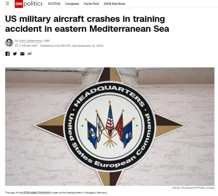中新網11月12日電 據美國有線電視新聞網(CNN)報道,美國歐洲司令部當地時間11日表示,一架美國軍用飛機在地中海東部墜毀。