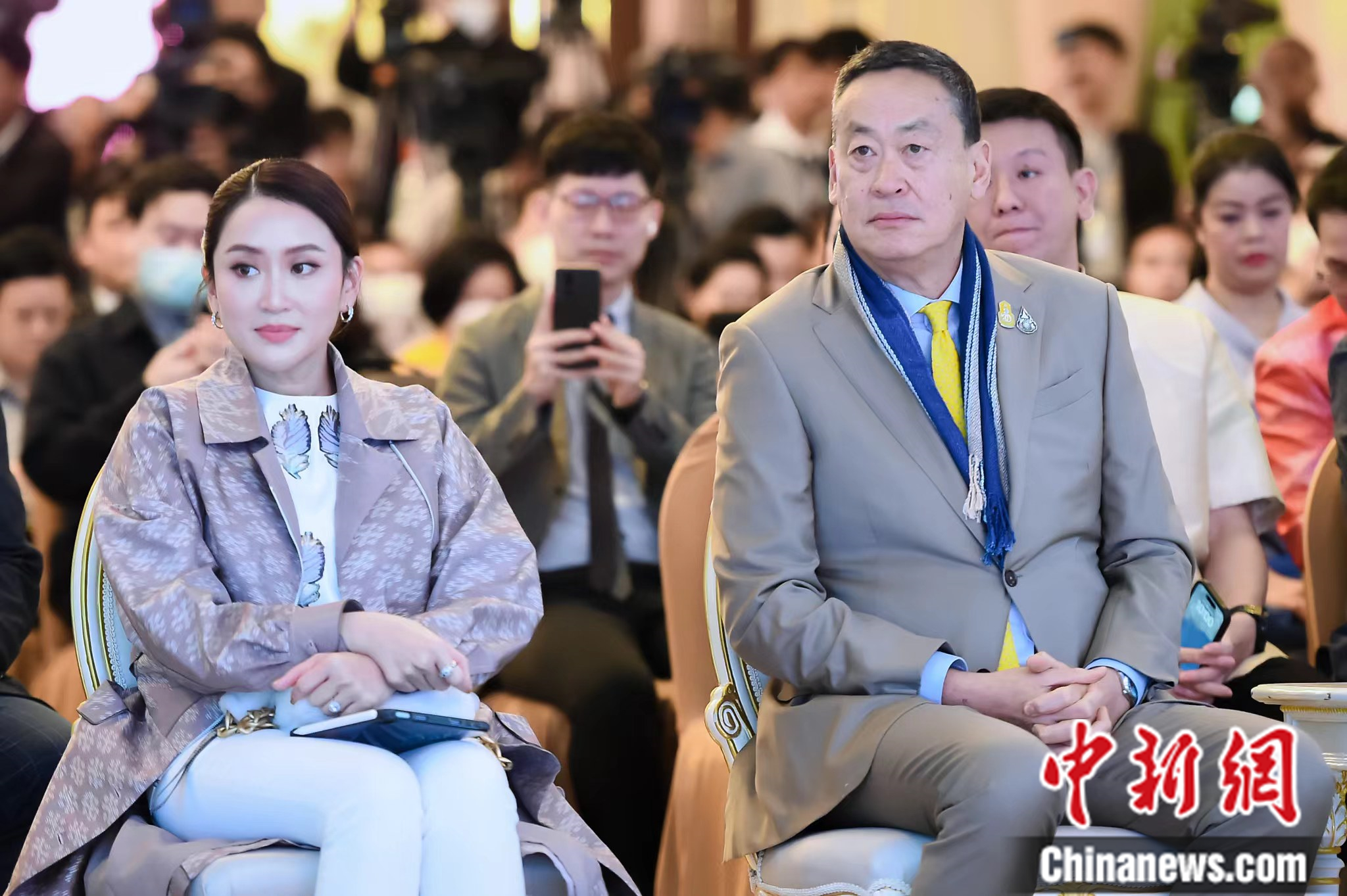 泰國總理賽塔(右)和泰國國家軟實力戰略委員會副主席貝東丹(左)等出席啟動儀式。趙婧楠攝