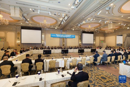 這是11月15日在日本東京拍攝的第九輪中日企業家和前高官對話會現場。新華社記者 張笑宇 攝
