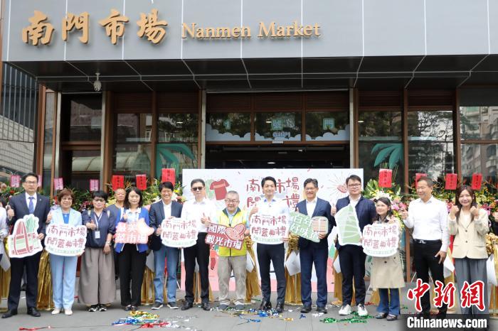 11月16日,經(jīng)過四年改建的臺北南門市場正式重新開業(yè),圖為出席開幕式的嘉賓剪彩后合影。 中新社記者 陳小愿 攝