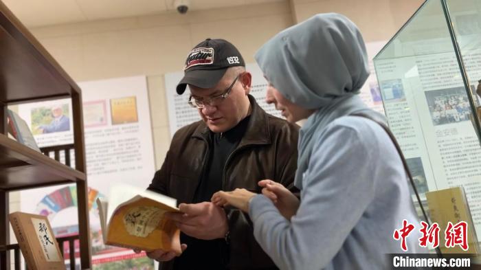 11月中旬,甘肅中醫藥大學俄羅斯留學生李峰夫婦,在圖書室翻看中醫相關書籍?!⊥跄劣?攝