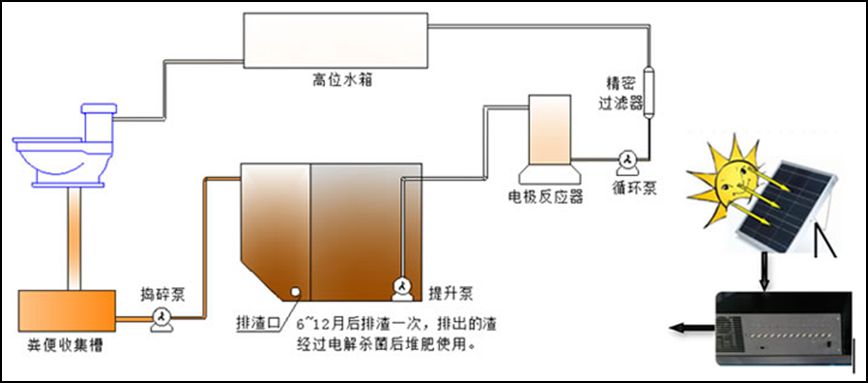 世界廁所日前夕,中新網(wǎng)記者來到位于北京市房山區(qū)黃山店村的一處“新世代廁所”示范項目點。農(nóng)業(yè)農(nóng)村部規(guī)劃設(shè)計研究院高級工程師王惠惠介紹,這是國內(nèi)第一個示范項目點,于2022年6月開始運行。該項目點采用了美國加州理工學(xué)院Hoffmann教授團隊研發(fā)的電化學(xué)高級氧化技術(shù)對糞污進行處理,由中國企業(yè)進行一定本土化改進,并由規(guī)劃院提供太陽能供暖技術(shù)支持。