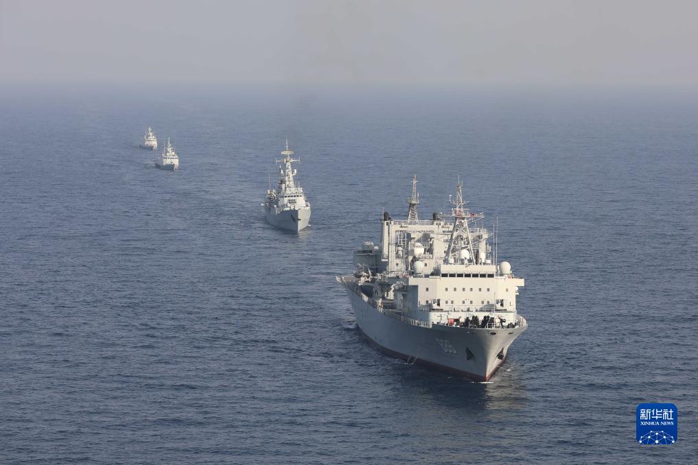 中巴“海洋衛(wèi)士-3”海上聯(lián)合演習(xí)在阿拉伯海北部海空域舉行,雙方艦艇組織編隊(duì)運(yùn)動(dòng)(11月14日攝)。新華社發(fā)(姜霞攝)