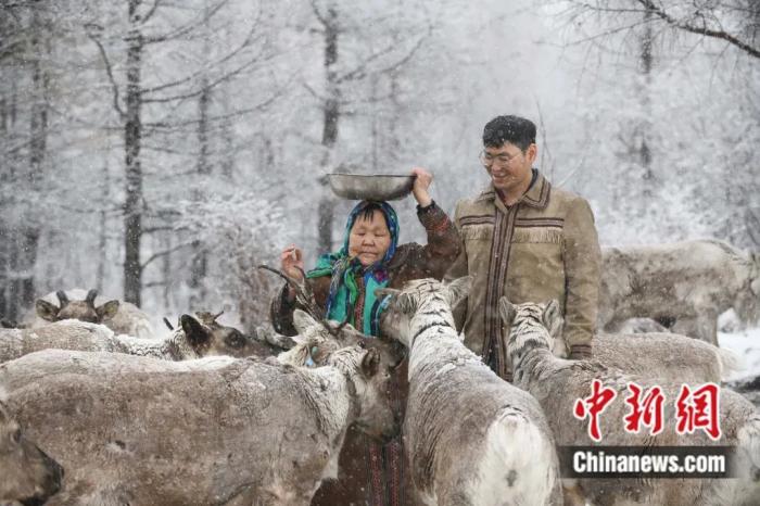 2019年,他接過部族的傳承,和母親共同照顧著鹿群,并開始以短視頻的形式,給更多人展示使鹿鄂溫克人原汁原味的生活狀態。