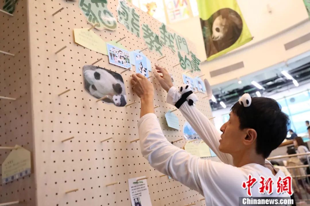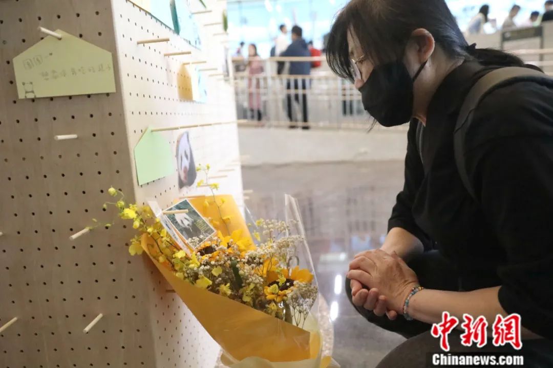 不少家長帶著小朋友來到現場參加活動,小朋友在卡片上慢慢畫出心中熊貓的模樣,并寫下想對“團團”說的話。有的民眾還送來鮮花,表達對“團團”的喜愛和懷念之情。