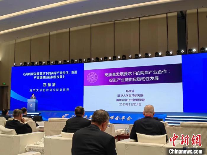 11月14日,清華大學公共管理學院、臺灣研究院副教授鄭振清在兩岸企業家峰會10周年年會上作主題演講。(受訪者供圖)