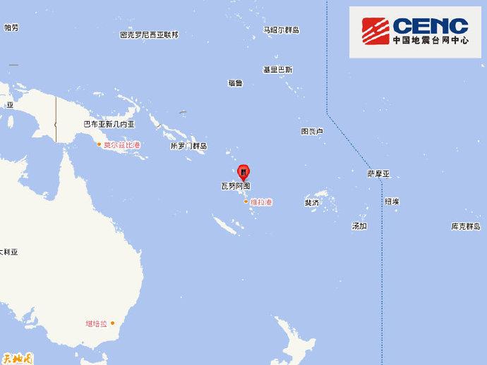 中新網11月22日電 中國地震臺網正式測定:11月22日12時47分在瓦努阿圖群島(南緯15.05度,東經168.15度)發生6.9級地震,震源深度10千米。