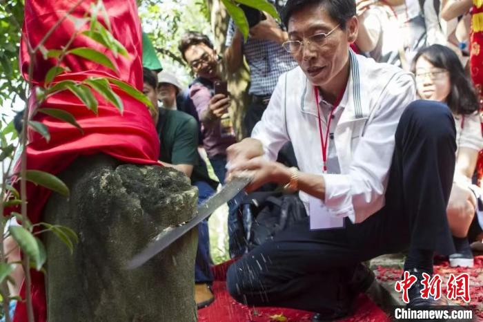 中新網東莞11月22日電(許青青 李純)第十屆“東莞香典”莞香采香日活動22日在東莞大嶺山鎮莞香非遺保護園舉行。由莞香制作技藝國家級非物質文化遺產項目代表性傳承人黃歐遵循古法采下的“頭香”拍出20萬元。