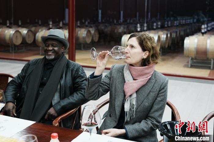 德國駐華大使館食品與農業參贊鄧菲(右)品鑒寧夏葡萄酒。中新網記者 崔楠 攝
