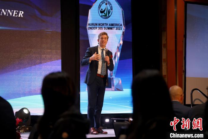 當地時間11月26日晚,加拿大多倫多,胡潤百富董事長兼首席調研官胡潤出席“加拿大U30創業先鋒”榜單發布及頒獎活動。胡潤研究院與加拿大青商俱樂部當天聯合發布該榜單。中新社記者 余瑞冬 攝