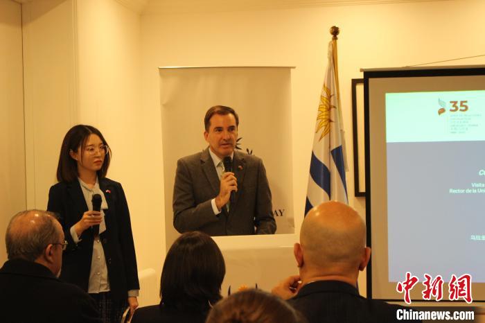 烏拉圭共和國大學(xué)校長羅德里戈·阿里姆發(fā)言。 蘇婧欣 攝
