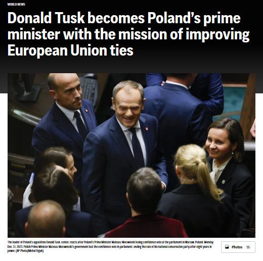 報道稱,根據眾議院議程安排,圖斯克政府將于12日向眾議院提交施政計劃,并接受信任投票。如通過信任投票,預計圖斯克政府將于13日上午宣誓就職。