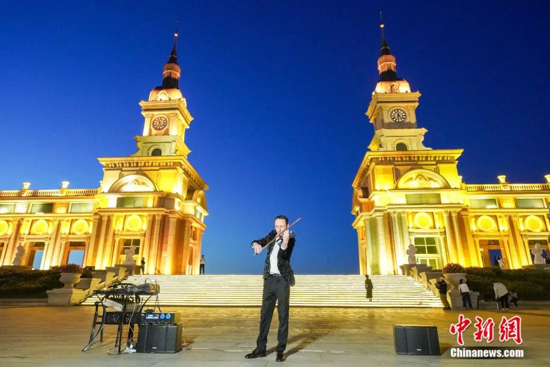9月13日,黑龍江省首屆中俄地方文化藝術季街頭路演在音樂長廊舉行。演奏者用小提琴演奏《如愿》。中俄音樂文化交流廣泛而深入。趙宇航攝