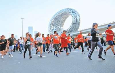 人們踴躍參加“迪拜跑”活動。