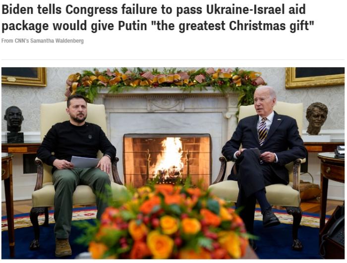 另據美國有線電視新聞網(CNN)報道,當天下午,澤連斯基前往白宮會見拜登,雙方在會談中都強調了美國對烏援助的緊迫性。拜登稱,如果美國會未能通過對烏援助計劃,這將是“送給俄總統普京最好的圣誕禮物”。