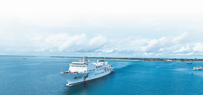 2023年7月22日,中國海軍“和平方舟”號(hào)醫(yī)院船結(jié)束對(duì)基里巴斯的訪問駛離塔拉瓦港。