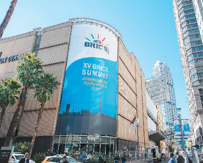 2023年8月23日,金磚國家領(lǐng)導(dǎo)人第十五次會(huì)晤在南非約翰內(nèi)斯堡舉行。圖為會(huì)場(chǎng)外景。