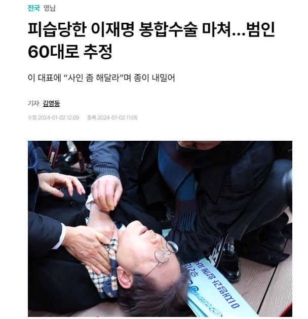 中新網1月2日電 綜合韓媒報道,當地時間2日,韓國最大在野黨共同民主黨黨首李在明在釜山遇襲后,接受了縫合手術。