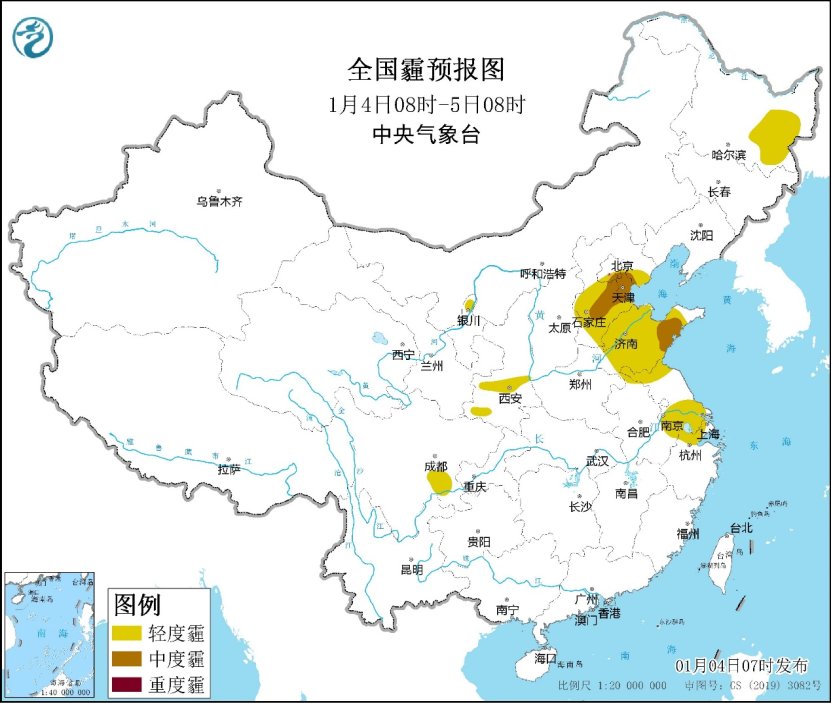 中央氣象臺(tái)今晨繼續(xù)發(fā)布大霧黃色預(yù)警:預(yù)計(jì),今晨至上午,山東南部、安徽中北部、江蘇大部、湖北中部、湖南北部、江西東部、福建西部、四川盆地南部等地的部分地區(qū)有大霧,其中山東南部、江蘇南部、安徽中部、湖北中部、江西東部等地的部分地區(qū)有能見(jiàn)度低于500米的濃霧,局地有能見(jiàn)度低于200米的強(qiáng)濃霧。此外,今明兩天,華北南部、黃淮中東部、江淮等地?cái)U(kuò)散條件較差,有輕至中度霾。