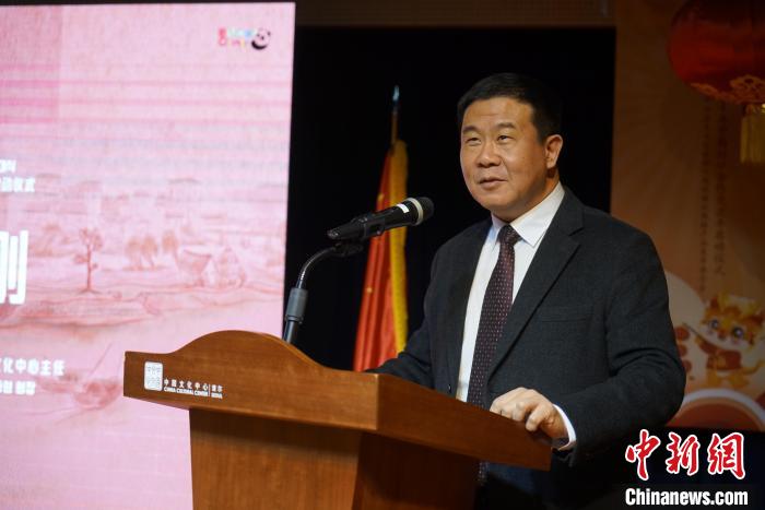 圖為中國駐韓國使館參贊兼首爾中國文化中心主任沈曉剛致辭。劉旭 攝