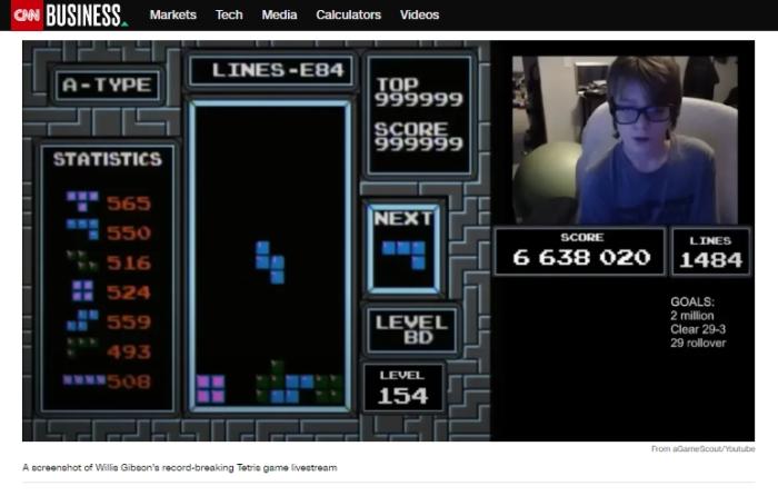 中新網(wǎng)1月4日電 綜合美媒當(dāng)?shù)貢r(shí)間3日?qǐng)?bào)道,來(lái)自美國(guó)俄克拉何馬州的13歲少年威利斯·吉布森打通任天堂版“俄羅斯方塊”游戲的157關(guān),被認(rèn)為是這款經(jīng)典游戲發(fā)行30多年后首個(gè)通關(guān)的人。