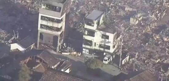 日本震后航拍畫面。(圖源:央視新聞視頻截圖)