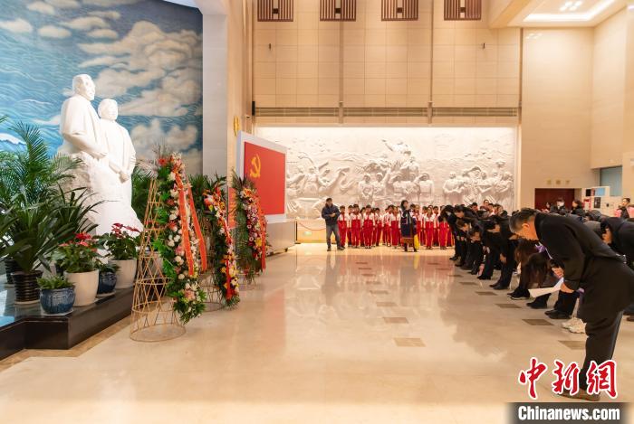 據了解,緬懷活動在該紀念館瞻仰廳舉行,由紀念館黨總支副書記、副館長王建平主持。9時57分,紀念館黨總支書記、館長王起寶代表紀念館全體職工向周恩來鄧穎超漢白玉雕像敬獻花籃,并帶領全體職工鞠躬致敬,以表達對周恩來同志的深切緬懷。