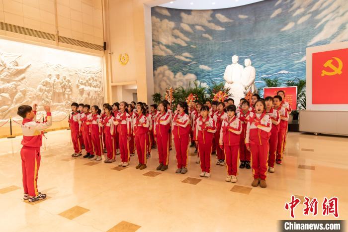 隨后,天津市川府里小學學生為大家帶來精彩朗誦《為中華之崛起而讀書》,再現了周恩來青年時代在奉天(今沈陽)東關模范學校上學時立下的宏偉志向。伴隨著《紅星閃閃》的嘹亮歌曲,新時代少年立下了“故今日之責任,不在他人,而全在我少年。少年智則國智,少年富則國富,少年強則國強.......”的鏗鏘誓言。