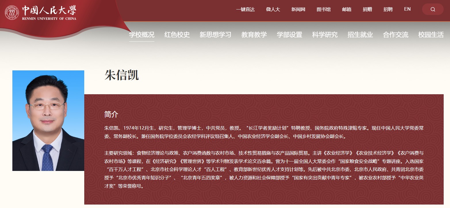 中國人民大學官網截圖
