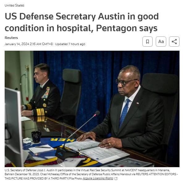 據報道,五角大樓新聞秘書在一份聲明中表示,奧斯汀正在與其高級幕僚保持聯系,能夠完全訪問加密通信設備,并繼續監控著美國防部在全球的日常運作。