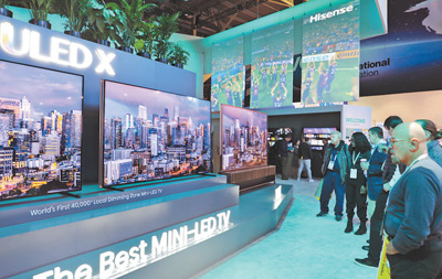 海信攜全球首款8K屏幕發聲激光電視、全球首款40000+分區Mini LED電視——110UX電視等全場景顯示技術解決方案亮相展會(見上圖,本報記者李志偉攝)。在110UX電視展品前,很多人駐足觀看,高清畫質不時獲得稱贊。獲得“2024 CES創新獎”的海信車用激光顯示技術,展示了激光顯示在車載領域的潛力。海信國際營銷公司副總裁戴維·戈爾德對記者表示,海信致力于將顯示技術融入生活,為消費者提供超越屏幕的體驗,讓其成為生活的一部分。