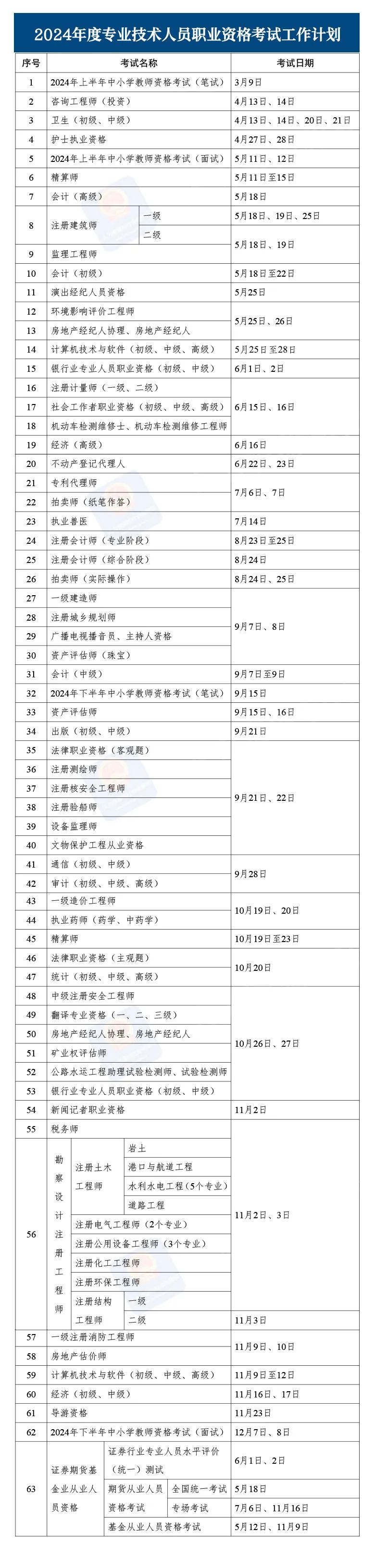 中新網1月17日電 近日,人力資源社會保障部辦公廳印發《關于2024年度專業技術人員職業資格考試工作計劃及有關事項的通知》,明確了考試時間表。