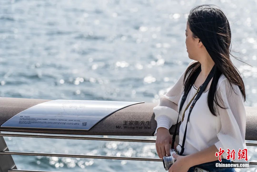 2024年1月14日,隨著電視劇《繁花》的熱播,香港尖沙咀星光大道上導演王家衛的銘牌受到關注,成為游客打卡對象。侯宇 攝